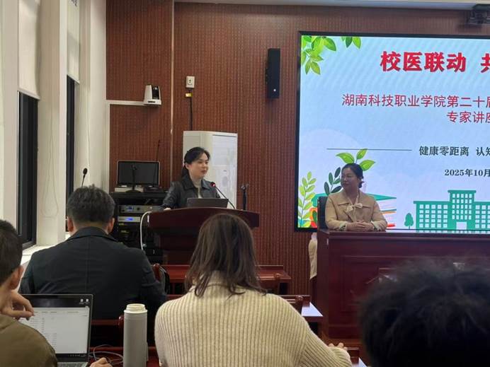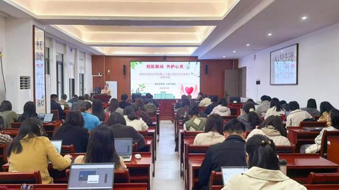 本次讲座特邀湖南省株洲市第三人民医院精神科副主任医师、中级心理治疗师、龙燕主任担任主讲嘉宾,学生工作部副部长杨豪虎主持。各二级学院党总支副书记、学工办主任及全体专兼职辅导员参加活动。讲座旨在充分发挥校医协同育人作用,普及心理健康知识,引导广大师生科学应对心理问题。