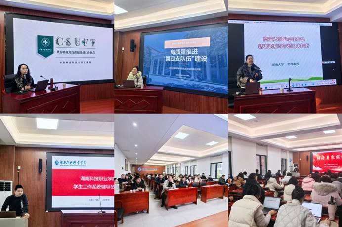 本次培训围绕辅导员核心能力提升,科学设置政治素养、实务技能、心理育人、案例剖析四大模块。政治素养模块特邀湖南理工职业技术学院徐军主讲“高质量推进‘第四支队伍’建设”,阐释新时代辅导员的政治使命与育人担当,强化思想引领作用;实务技能模块涵盖学工平台操作实务培训,助力提升信息化管理与数据运用能力,同时邀请中南林业科技大学王清扬以“辅导员如何在日常工作中积累大赛案例素材”为题,传授亮点挖掘与成果提炼方法,为专业发展提供实践路径;心理育人模块特邀湖南大学彭萍教授主讲“高校大学生心理危机精准识别与干预能力提升”,通过理论讲解与案例剖析,传授危机预防、识别及干预技能,提升心理育人专业化水平。