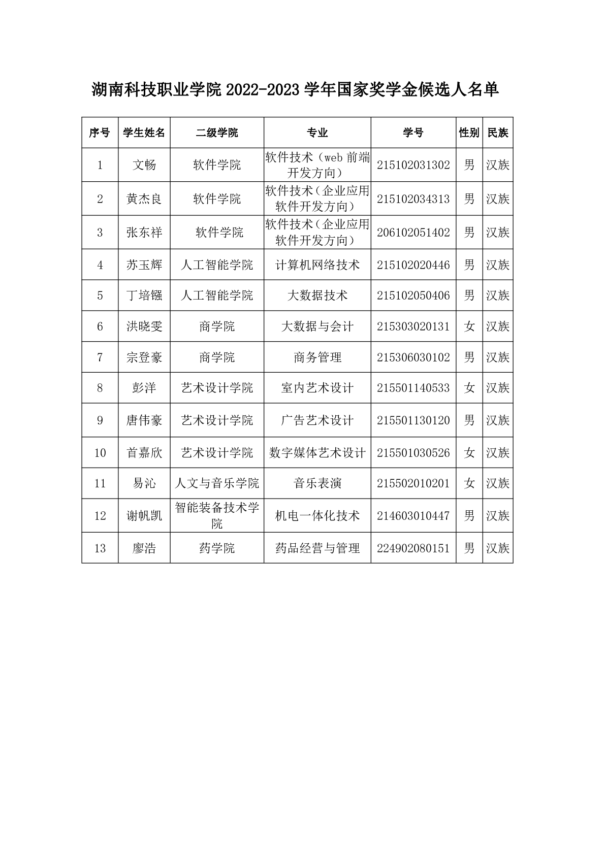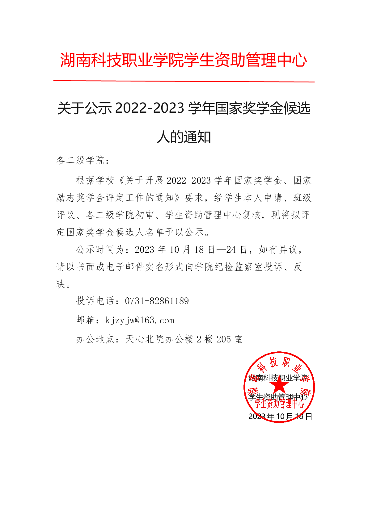 关于公示 2022-2023 学年国家奖学金候选 人的通知