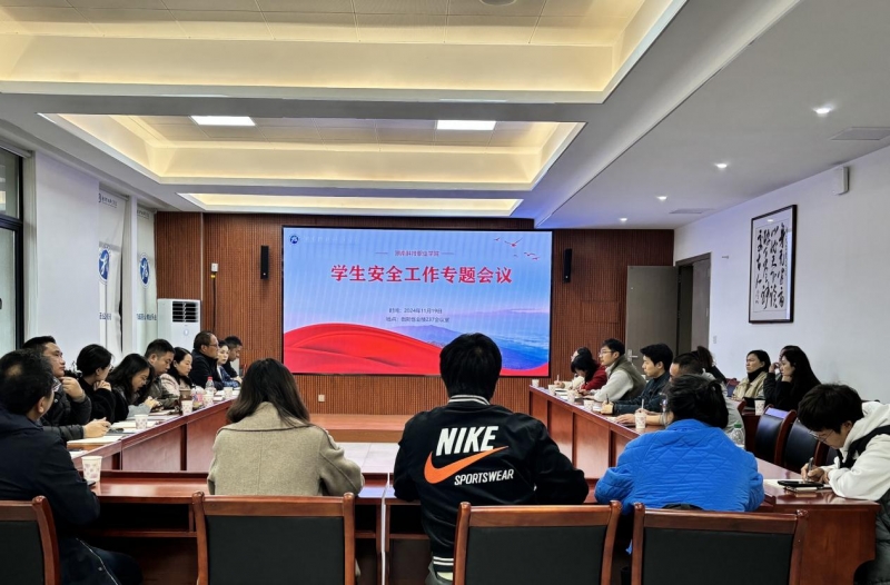 11月19日下午,学生工作部、团委在天心北校区召开学生安全工作专题会。会议旨在深入贯彻落实习近平总书记关于安全生产的重要指示精神,全面落实学校第二十一次专题党委会工作要求,树牢底线思维,保持警钟长鸣,以时时放心不下的责任感抓紧抓实学生安全各项工作。学校武装部、保卫部负责人曾亮,团委书记李阳、各二级学院党总支副书记、学工办主任、团总支书记、安全工作专员及学工部、团委工作人员参会。会议由学生工作部部长李洁妮主持。