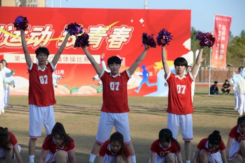 比赛按照抽签顺序依次登场完成自选动作和规定动作,评委根据动作准确性、节奏感与协调性、精神面貌与表现力、创意与难度四个方面进行评分。各支参赛队伍成员身着统一服装,以最饱满的热情、最整齐的步伐、最标准的动作,展示他们的训练成果和青春魅力。比赛中,人文与音乐学院的“音浪最强队”步伐坚定,神采飞扬,用行动诠释着“至诚至公,精业乐业”的校训精神;药学院的“闪药青春队”动作整齐划一,身姿矫健,仿佛每一滴汗水都在诉说着对胜利的渴望;商学院的“巅峰队”以团结协作、精益求精为信念,男女双方合力托举,动作精准,配合默契;人工智能学院的“汪汪立大功队”用标准的体操动作传播健康理念,用无限的活力与朝气感染着每一个人;智能装备技术学院的“我们跳的都队”朝气蓬勃,信心满满,以工匠精神展示每一个动作;艺术设计学院(湘瓷学院)的“绘梦飞跃队”用创意编织未来,在体操的舞台上勇敢挑战自我、实现了自我突破;软件学院的“乘风队”和“破浪队”身着色彩鲜明的运动服,在阳光下熠熠生辉,彰显着青春的活力与团队的默契,在体操的舞台上他们也不同凡响。