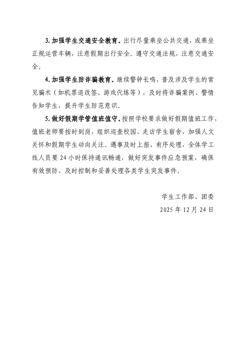 关于做好2025年寒假期间学生安全管理工作的通知